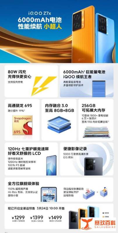 iQOO Z7系列發布會核心亮點為iQOO Z7搭載120W超快閃充+5000mAh電池,iQOO Z7x配備6000mAh電池+80W快充,起售價1299元。具體介紹如下: