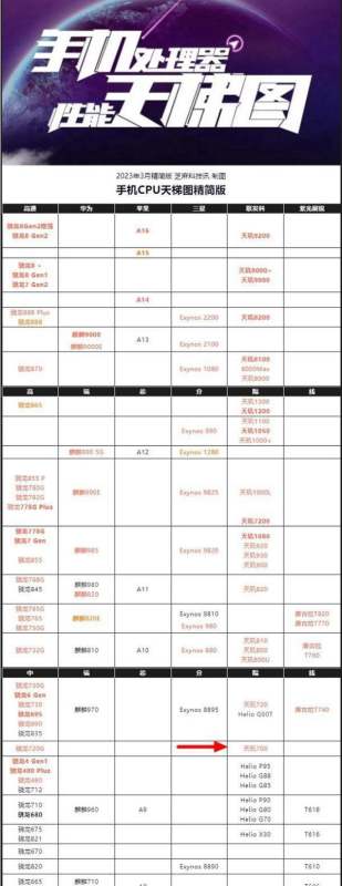 從核心參數(shù)來(lái)看,天璣700是一款規(guī)格并不高的處理器。從最新的「手機(jī)CPU天梯圖」可以看出,天璣700的性能與驍龍720G相當(dāng)。