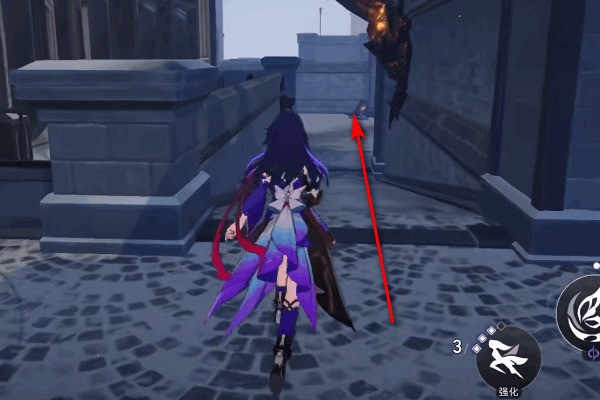 5、走到巷尾之后注意右邊的墻壁,圖下所示的位置就是均衡試煉二的入口。