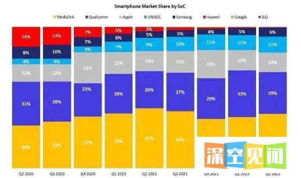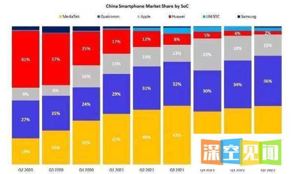 知名市場調研機構Counterpoint Research報告顯示,聯發科天璣移動芯片連續八個季度贏得全球和中國智能手機芯片市場份額第一。今年第二季度,聯發科在中國智能手機芯片市場拿下了42%的份額。