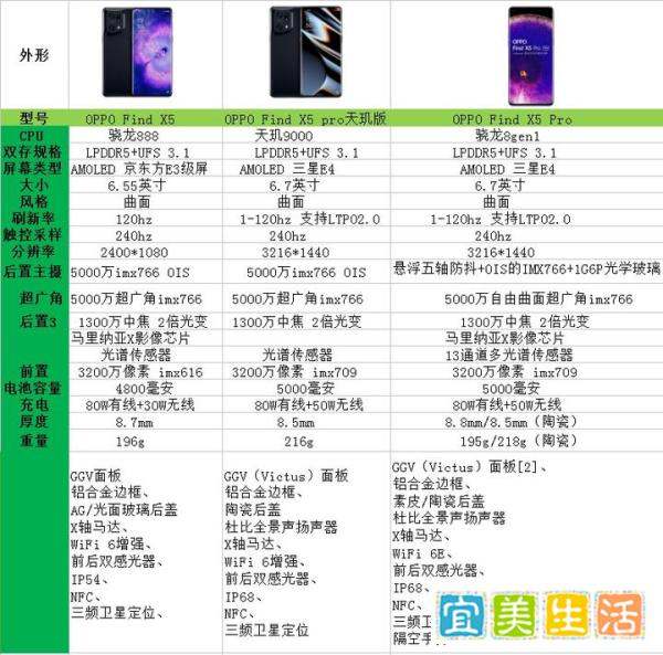 Find X5 Pro:驍龍8 Gen1+馬里亞納影像芯片,性能最強,適合游戲、多任務等高負載場景。