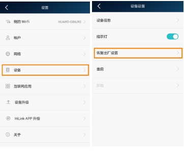 方式二:通過手機HiLink APP恢復出廠