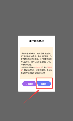 1、點(diǎn)擊被框的藍(lán)色同意按鈕,確認(rèn)隱私協(xié)議。
