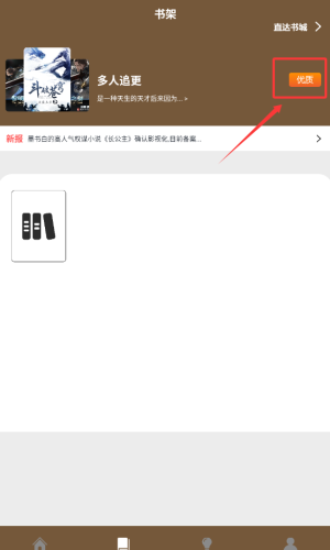 3、在書架頁點(diǎn)擊被框的橙色優(yōu)選按鈕。