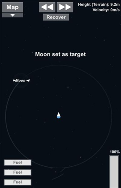 7、在推進(jìn)時(shí)候后在到達(dá)月球10KM的時(shí)間開啟燃料動(dòng)力,然后要注意下降速度,不用過快否則會(huì)墜毀;