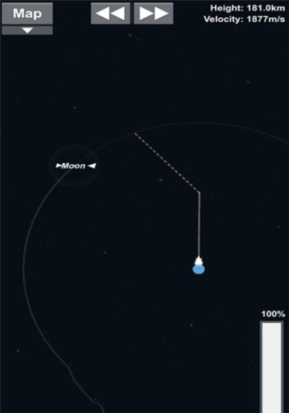 6、得到軌道后我們需要將染料馬力關(guān)閉,等待對(duì)接yueqiu得到軌道后然后將燃料馬力關(guān)閉,之后等待對(duì)接月球即可,小伙伴能夠選擇加速時(shí)候;