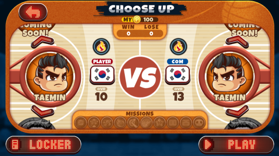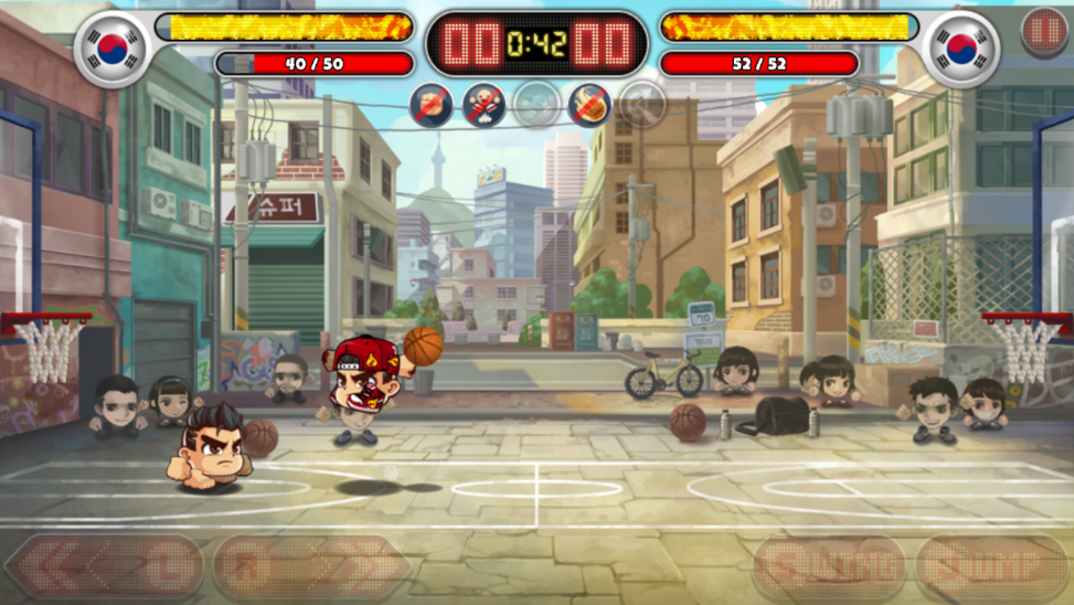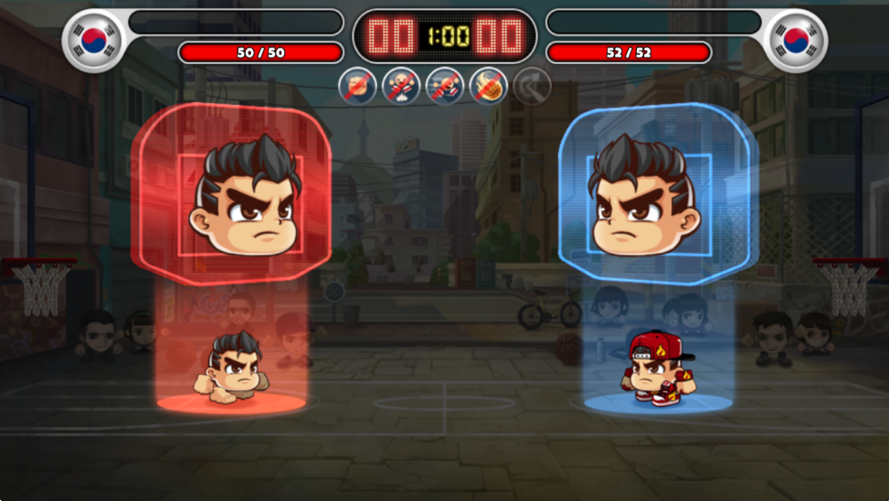 從韓國的火焰投籃手到英國的幽靈船長,游戲中有來自各個國家的球員及對手可供選擇,目前游戲中上線了12個富有個性的角色和超能投籃。游戲采用了橫版2D畫面呈現方式,主角是一個只有二身頭的卡通娃娃形象,碩大的頭部似乎在強調這個籃球比賽用到的可是頭頂。同樣由于這樣的設計,人物在比賽中五官表情也可以清晰的表現,隨著比賽越發激烈,甚至連選手受傷的細節都可以看清楚。