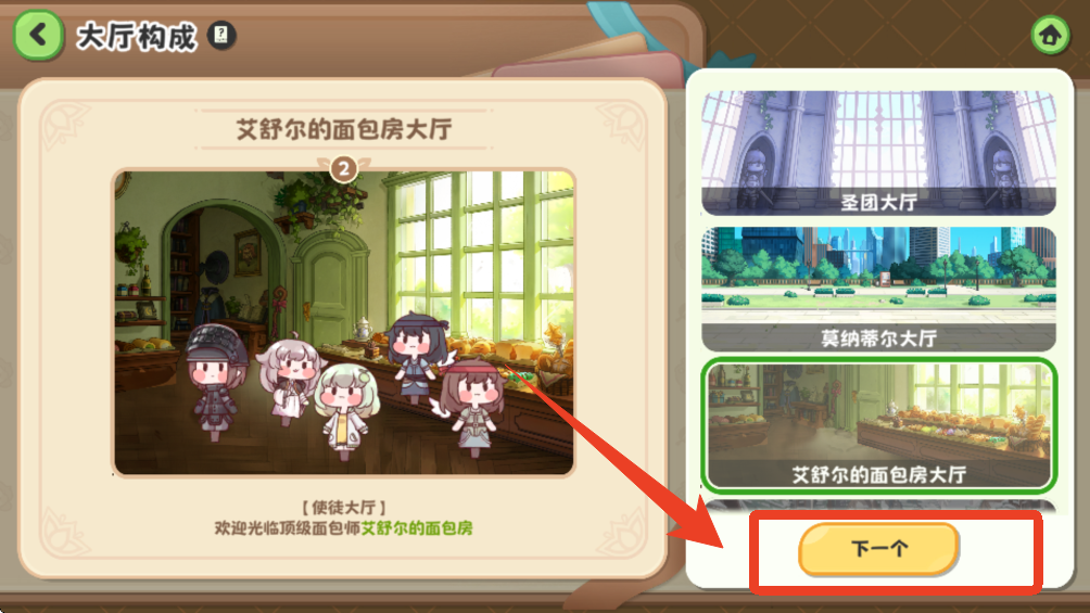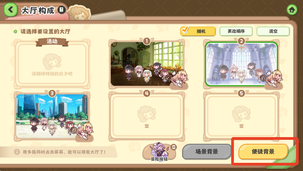 3、選擇其中一個大廳,然后點擊右下方的【使徒背景】。