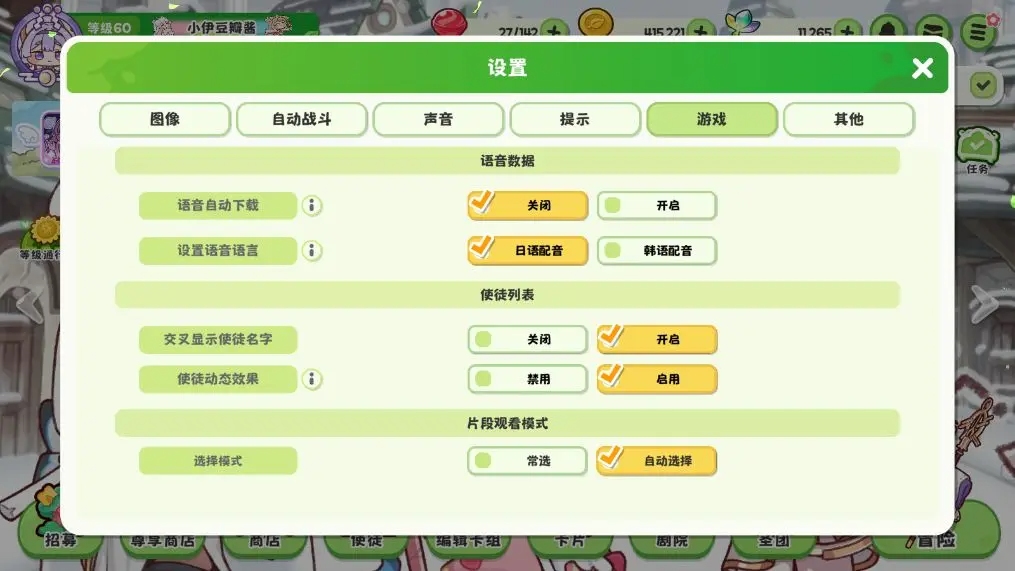 游戲-設置語音語言:日語配音、韓語配音切換(第一次切韓語配音,需下載語音包,重新進入游戲)