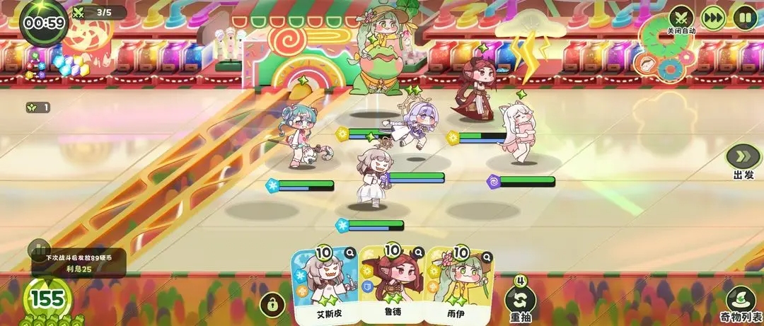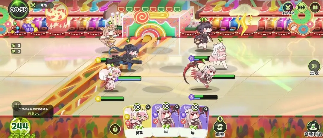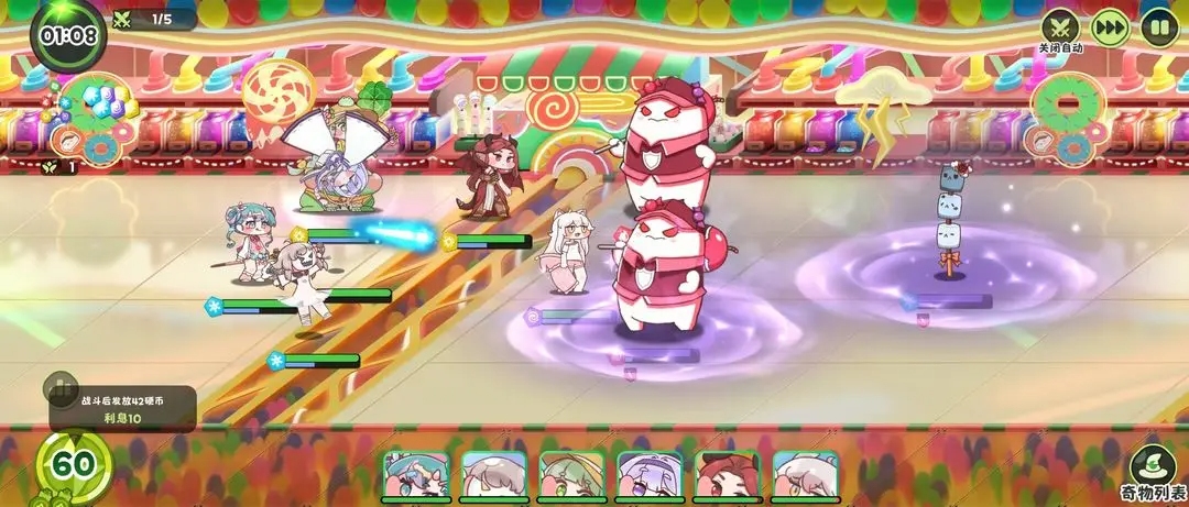 3)核心機制:硬幣與利息系統——在主線等多回合(通常為5回合)戰斗中,剩余硬幣能產生利息,這是實現越級挑戰的經濟基礎。
