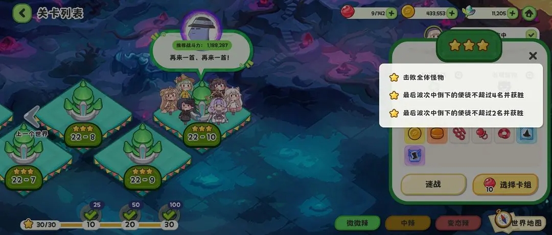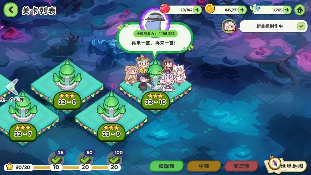 1)玩法本質:這是游戲的核心推圖玩法,分為 微微辣、中辣、變態辣 三種難度。首次通關獎勵最為豐厚。