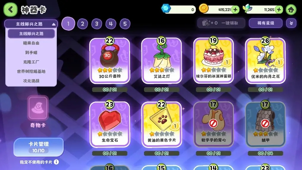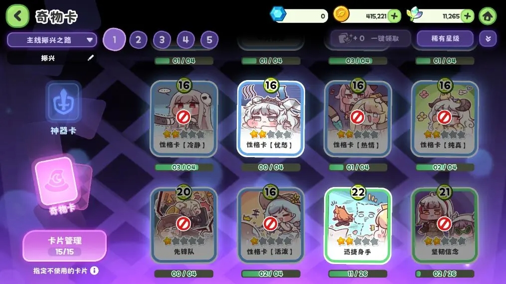 世界樹挖掘基地:這是【性格卡】的主場。請根據您當前挑戰的世界樹,攜帶對應的性格卡(如挑戰藍色則帶【冷靜】),并果斷禁用所有其他類型性格卡,以確保能刷出所需核心卡。