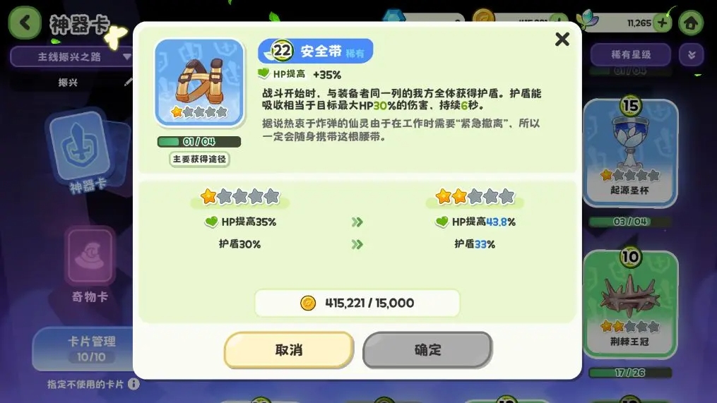 防御向優選【安全帶】:雖然是防御卡,但效果出眾。它能為我方一整排的使徒提供護盾,是保護后排核心或增強前排生存的利器,建議攜帶。